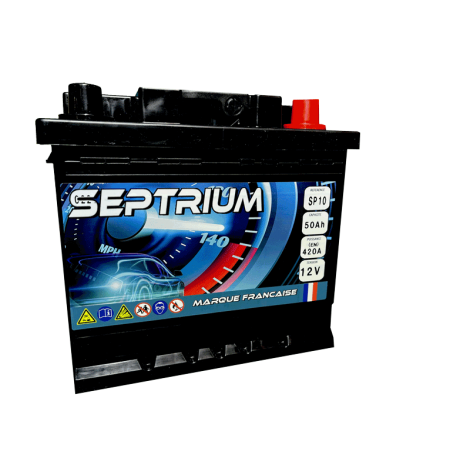 La Batterie SP10 est une Batterie voiture de collection 12V spécialement adaptée à la CITROEN GS . Il s’agit d’une batterie de la marque SEPTRIUM , d’une capacité de 50Ah et d’une puissance de 420A (EN) . N’hésitez plus, elle est garantie 2ans !